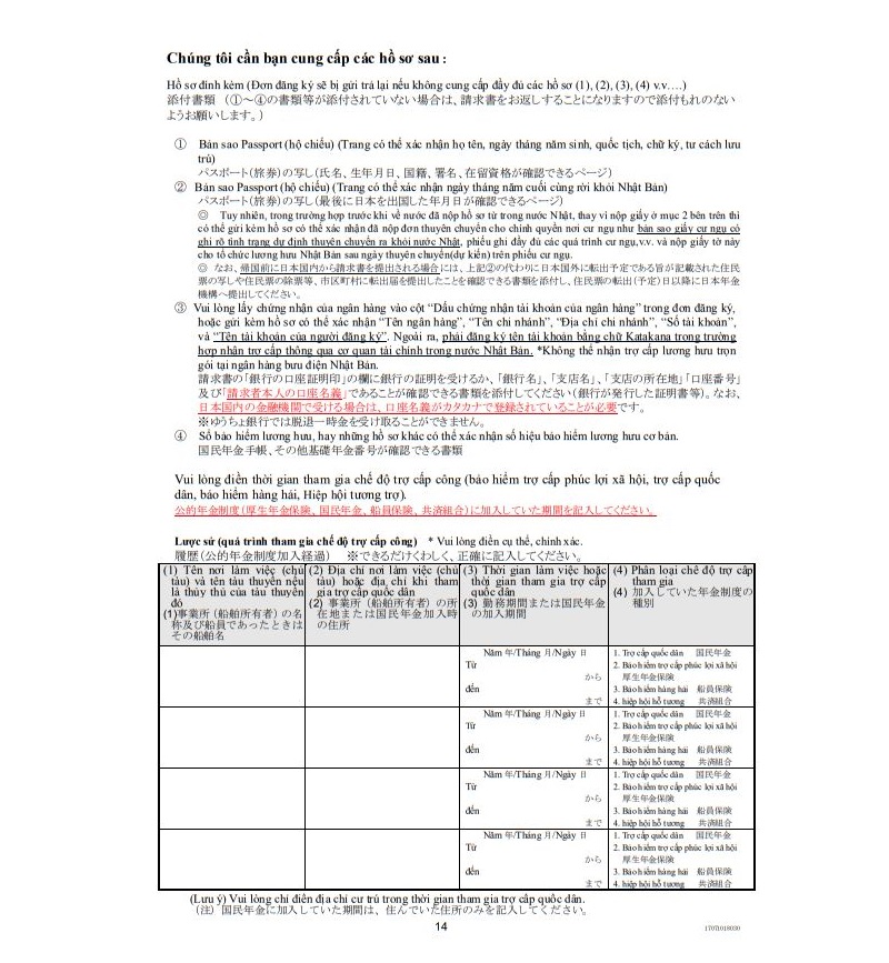 - Mẫu đơn lấy Nenkin lần 1 chính thức của cơ quan thuế tại Nhật Bản, không tải đơn trôi nổi trên mạng hoặc tự mình làm đơn theo dạng thủ côn. Vì mỗi lần đơn không hợp lệ sẽ tốn thêm phí, thời gian để làm thủ tục lại.