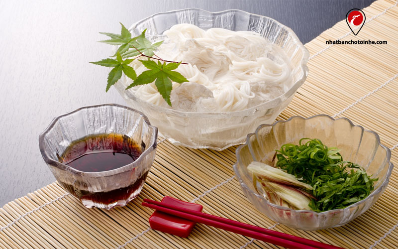 Somen gọi nôm na tiếng Việt là mì lạnh. Mì và nước dùng không để chung như Việt Nam mà chúng sẽ được chia ra để ở 2 chén khác nhau. Khi ăn, thực khách sẽ gắp mì nhúng vào nước dùng sau đó thưởng thức. Somen có thể dùng chung với hành lá hay dưa chuột. Đây được xem là một món ăn nhẹ và giải nhiệt của người Nhật. Nước dùng lành lạnh giúp thực khách xua tan đi cái nóng của mùa hè.