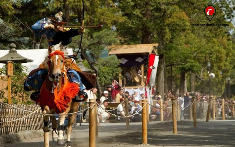Đến với lễ hội này, du khách sẽ cảm giác bản thân như được quay lại thời chiến quốc. Các cung thủ vừa cưỡi ngựa vừa đọ sức bắn cung.
