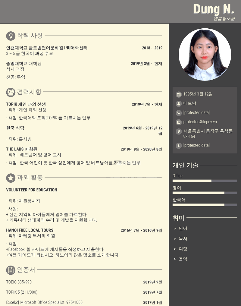 Tổng quan một mẫu CV tiếng Hàn cơ bản