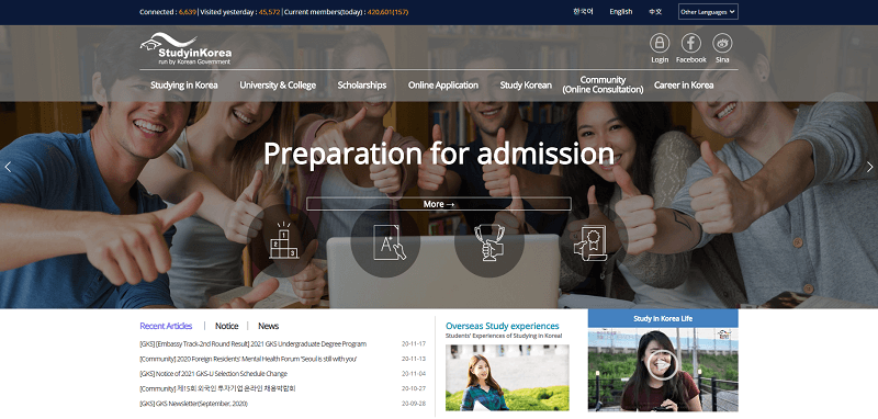 • Web: http://www.studyinkorea.go.kr/en/main.do