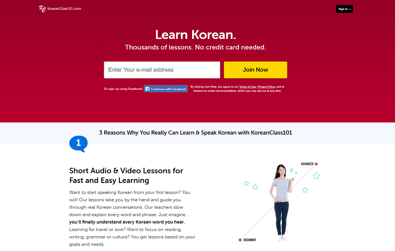 Korean Class 101 là trang web chất lượng hỗ trợ học tiếng Hàn online cho người mới bắt đầu. Đây cũng là một địa chỉ tự học tiếng Hàn online miễn phí phổ biến và được yêu thích. Korean Class 101 cùng khẩu hiểu “Learn Korean in the fastest, easiest and most fun way” sẽ giúp các bạn có những trải nghiệm tuyệt vời với ngôn ngữ lồng ghép khéo léo cùng văn hóa Hàn Quốc, lối sống trong con người Hàn Quốc.