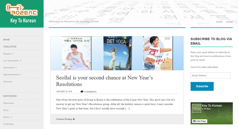 Key to Korean là một trang web học tiếng Hàn online nhập môn nổi tiếng. Key to Korean xây dựng chương trình phù hợp với mọi đối tượng, với tổng cộng 5 trình độ: Beginner, Low Intermediate, Intermediate, High Intermediate, Advanced. Tuy nhiên, trang web sử dụng tiếng Anh làm ngôn ngữ dạy chính bởi đây là ngôn ngữ thông dụng toàn cầu. Trong mỗi trình độ, trang web tiếp tục chia thành 2 chuyên mục nhỏ là ngữ pháp và từ vựng, 2 mục quan trọng đối với việc học mọi ngôn ngữ.