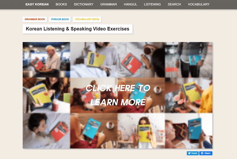 Take to me in Korean là một trong những trang web học tiếng Hàn online tốt nhất và nhận được đánh giá cao của người nước ngoài học tiếng Hàn. Trang web nổi tiếng với những đoạn video ngắn, nội dung thú vị, những đoạn hội thoại thường ngày phát âm rất chuẩn cùng từ vựng phong phú. Mỗi bài học trên web đều được chia thành các cấp bậc phù hợp cho từng đối tượng với trình độ khác nhau như học tiếng Hàn online sơ cấp, trung cấp, cao cấp và ở cuối mỗi cấp đều có thêm những bài kiểm tra để bạn đánh giá năng lực, sự tiến bộ của mình.